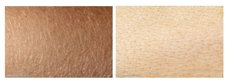 给你们看下国外专业评测机构,用高倍数放大镜看到的肌肤纹理图,左图是清洁不彻底的肌肤,无法吸收任何营养,右图是健康的肌肤,白皙细腻。