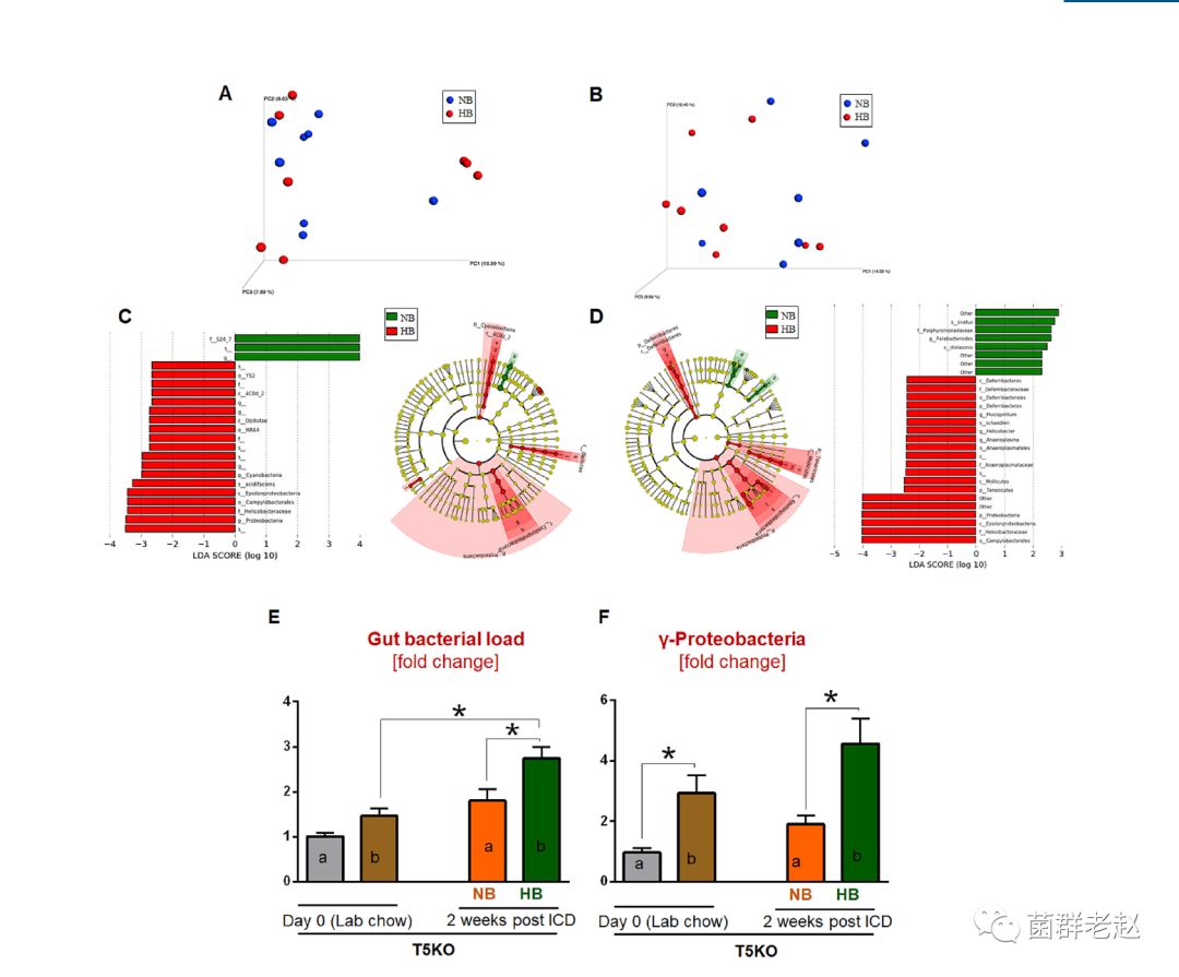 研究者用抗生素清除了T5KO小鼠的菌群以后,ICD饲料就不能诱导出肝癌了。这个结果说明肠道菌群是可溶性膳食纤维诱发肝癌的必须条件。