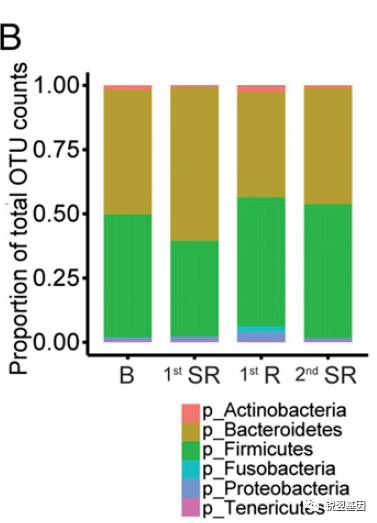 结果发现,做睡眠不足处理之后,大鼠肠道菌群Firmicutes:Bacteroidetes比例没有发生变化。