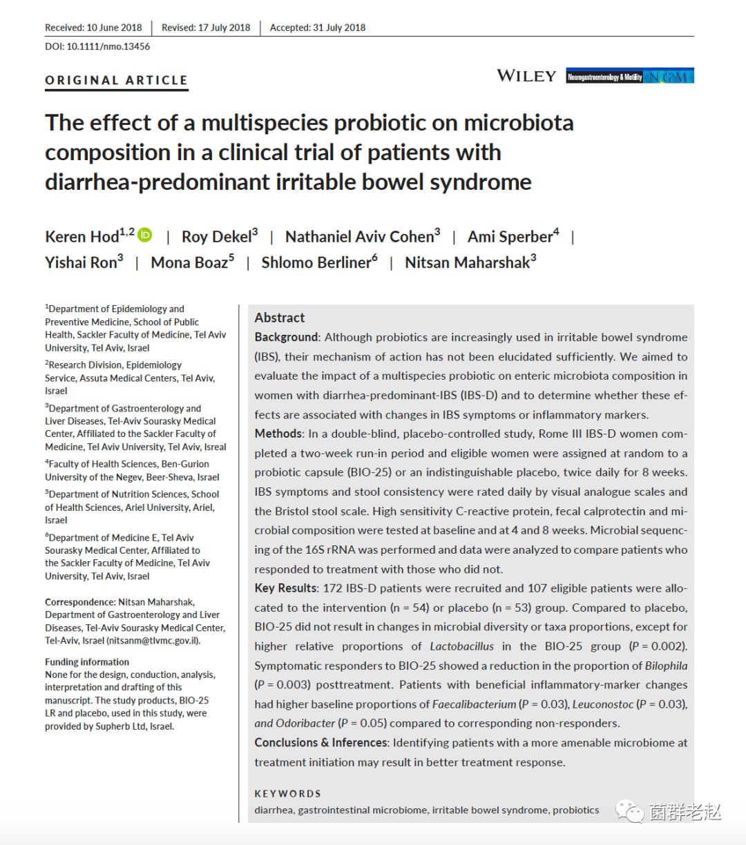 这篇2018年的论文,是同一个研究小组对2017年发表的论文中的参试者的菌群做了分析,发现,对Bio-25有反应的人与没有反应的人相比,一开始的菌群有差别(图9)。提示,如果按照病人菌群的不同,有针对性地使用Bio-25,也许效果就能超过安慰剂了。