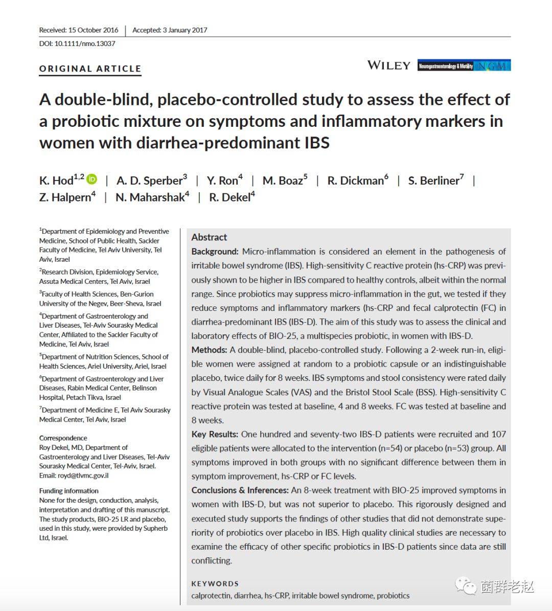 有意思的是,魏斯曼研究院的科学家也参与了这项研究。很显然,他们做《细胞》发表的那两篇论文的时候,并没有证据表明,他们使用的活菌制剂Bio-25是益生菌。拿不是益生菌的产品做实验,然后说益生菌不一定有用,很显然对整个益生菌产业是不公平的。